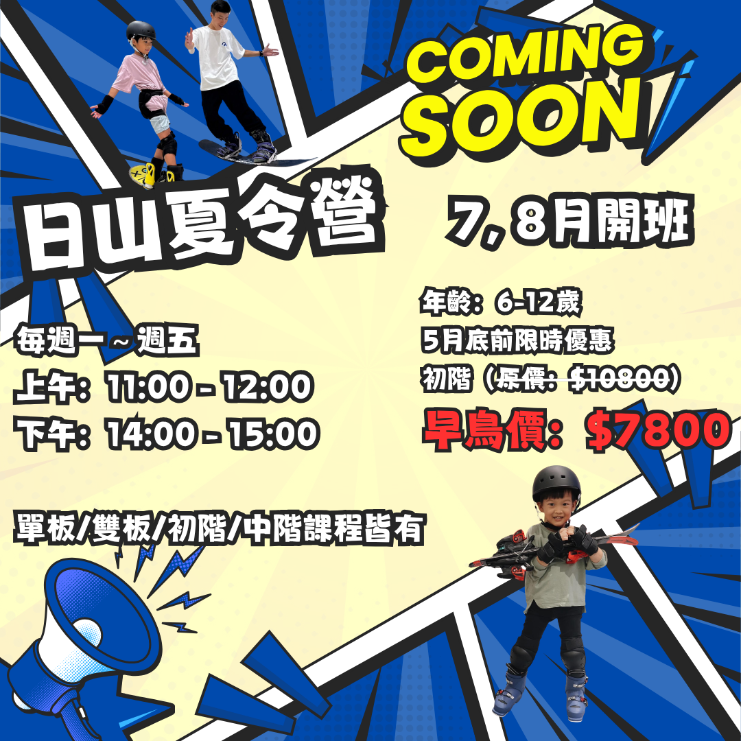 兒童初階單板體驗課 NT$2,600 NT$1,280 立即預約 幼幼雙板初階體驗課(一對一) NT$2,600 NT$1,600 立即預約 兒童初階雙板體驗課 NT$2,600 NT$1,280 立即預約 ⛷️涼夏夏令營❄️ 5/30前完成報名免裝備租借費 加入購物車